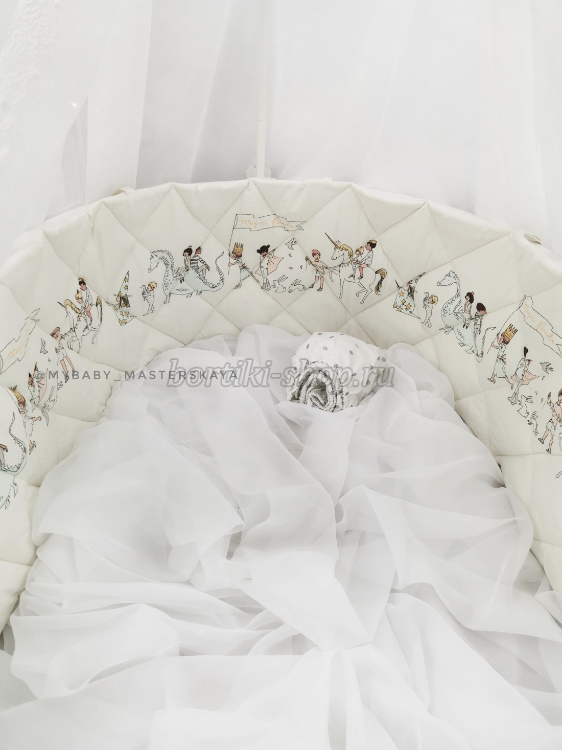 Артикул: БС001-Парад Цвет: молочный Комплектация: Бортики на весь периметр кроватки, простынь на резинке, сумочка для хранения комплекта Состав : 100% хлопок Наполнитель : холлофайбер